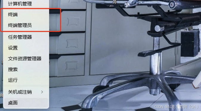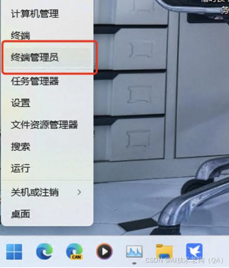 首先在Windows【开始菜单】点击【鼠标右键】-打开【Windows PowerShell】或者【终端】(以下简称“终端”)