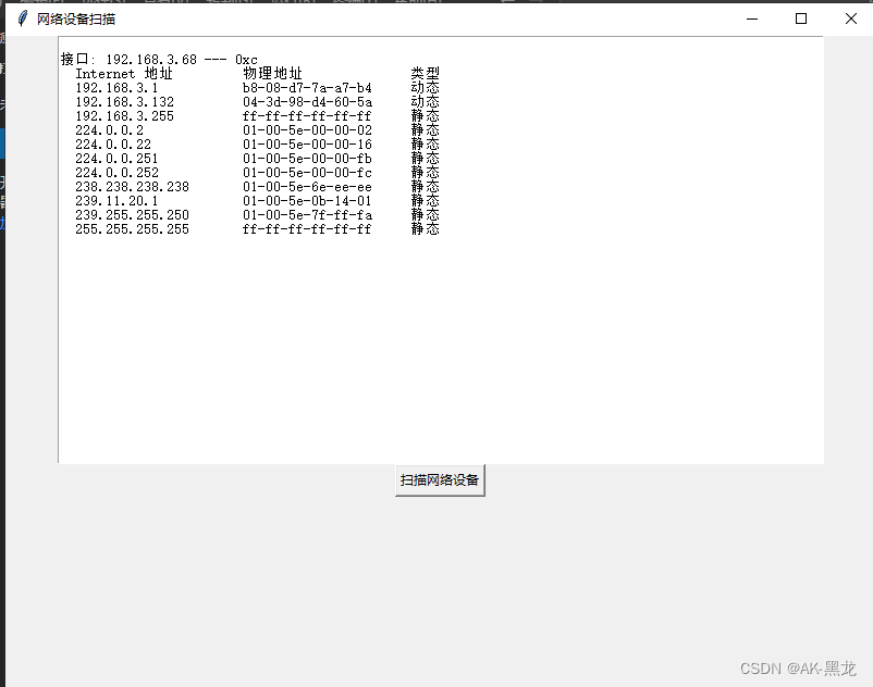 后期会更新第二版,通过扫描的设备,分析并显示出设备厂家,名字,及设备的型号。