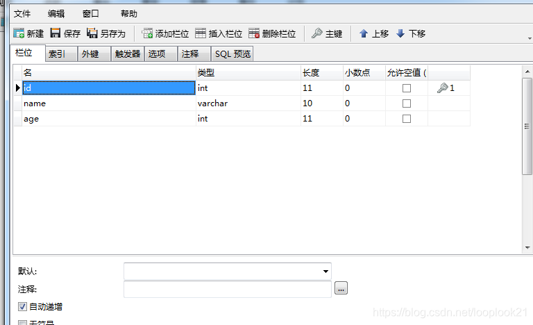 3、接一来创建pojo,mapper等对象,创建如下表结构: