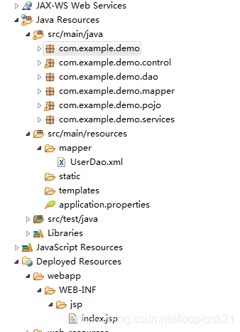 代码我放在git上面地址为: https://github.com/lookloop21/Spring-Boot-Rersource 名为:spring-cloud-mybatis-jsp