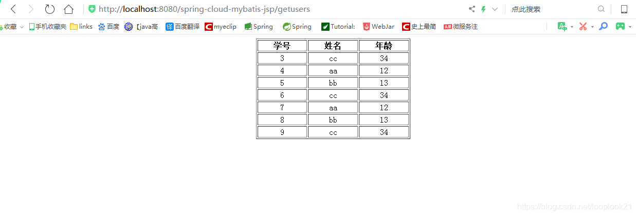 再运行查看:http://localhost:8080/spring-cloud-mybatis-jsp/getusers