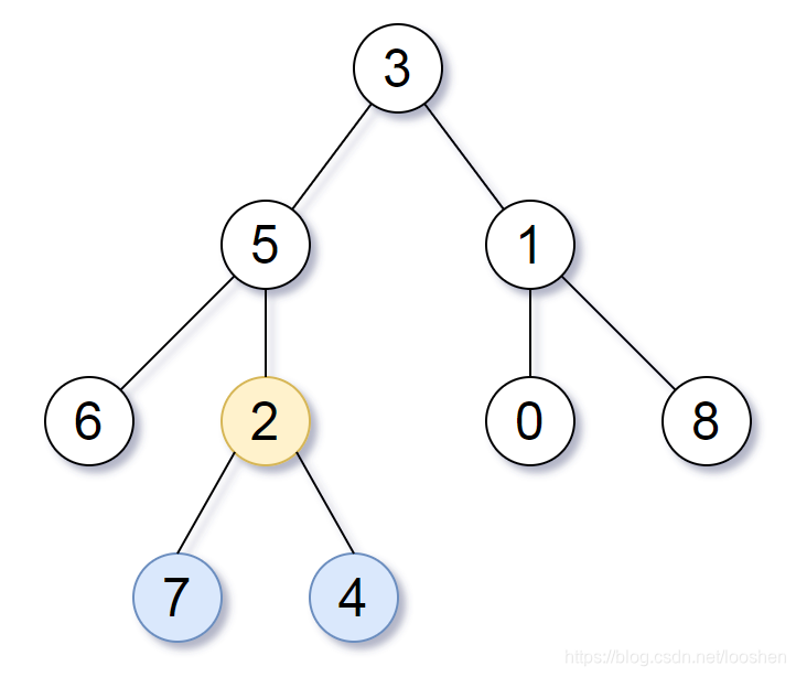 输入:root = [3,5,1,6,2,0,8,null,null,7,4]