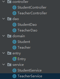 entry为程序主入口,创建完的包和类如下