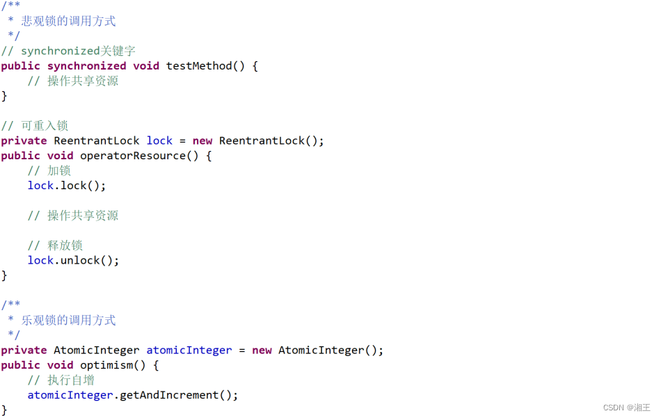 1、悲观锁:包括synchronized关键字和Lock类,适合写操作多的场景