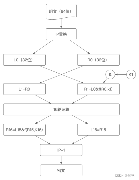 要加密一组明文,每个子密钥按照顺序(1-16)以一系列的位操作施加于数据上,每个子密钥一次,一共重复16次,每一次迭代称之为一轮: