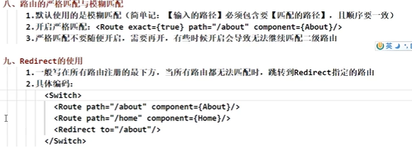 严格匹配:<Router exact path=?... compnent={myComp}> 路径必须与path一模一样