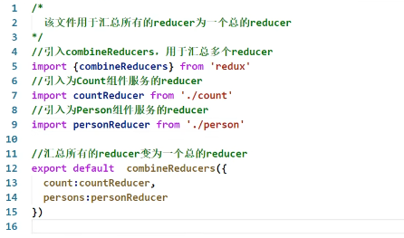 reducers中创建index.js, 用来汇总其他组件的reducer