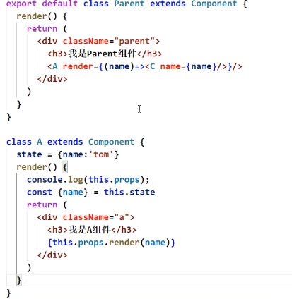 也可以写作:<A render = {()=><B/>}/> 也是表示AB的父子关系
