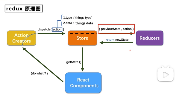 原理图大致:通过Action Creators把需要处理的事情包装成一个action对象,即需要做什么,通过Store把对象传递到Reduces,Reducers进行最终的加工处理