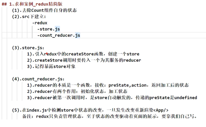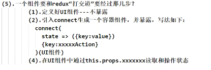 (在组件中)redux中的状态更改不会帮你重新渲染界面->在类似于界面初始化时,绑定一个对store的订阅事件,在store中有redux值改变时,再调用setState()进行render