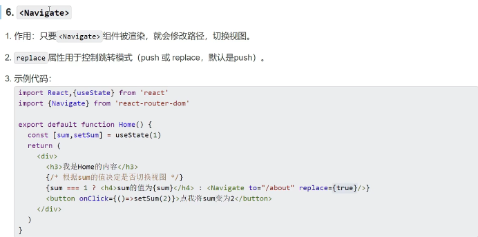 router6中 Link NavLink(点击切换) Navigate(渲染到页面上才能进行路由切换)