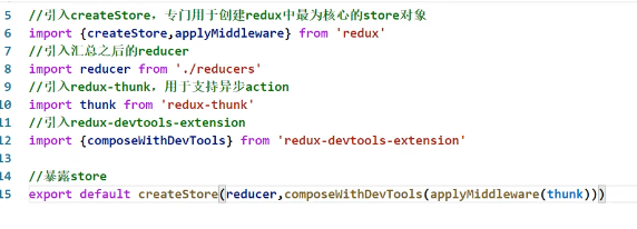 在store.js中需要引入中间件,作为第二参数传递到createStore()中