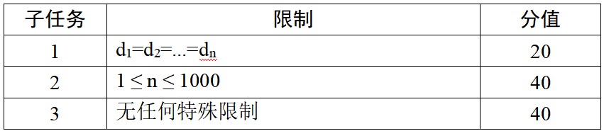 第二行包含 n 个正整数 di(1 ≤ di ≤ 10^9),表示朋友 i 家的道路维修费用。两个数之间用一个空格隔开。