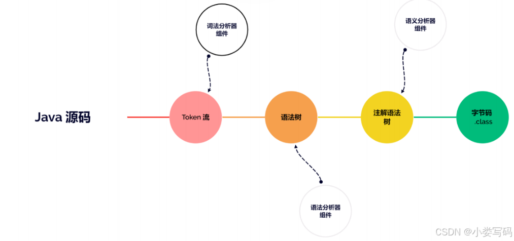 经过词法和语法分析生成语法树以后,编译器就不会再对源码字符流进行操作了,后续的操作都建立在抽象语法树之上。