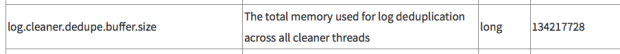 再kafka的官方文档可以查到这个logCleanerDedupeBufferSize默认134217728字节,128MB了。估计就是这个造成OutOfMemory了。