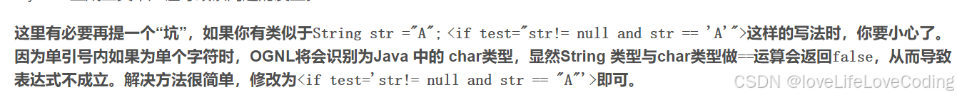 原因是:mybatis是用OGNL表达式来解析的,在OGNL的表达式中,’1’会被解析成字符,java是强类型的,char 和 一个string 会导致不等,所以if标签中的sql不会被解析。