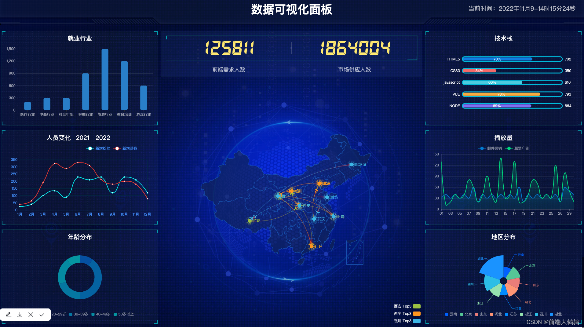 应对现在数据可视化的趋势,越来越多企业需要在很多场景(营销数据,生产数据,用户数据)下使用,可视化图表来展示体现数据,让数据更加直观,数据特点更加突出。