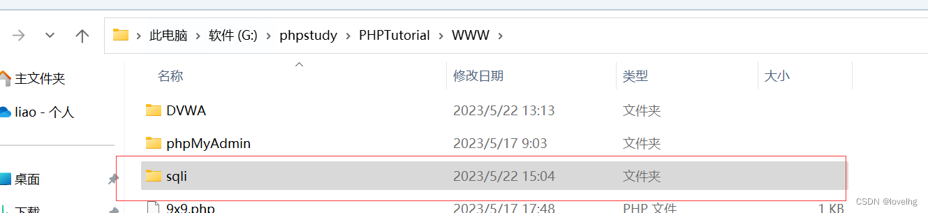 2、将sqli文件 放在phpstudy文件夹中的www文件夹下