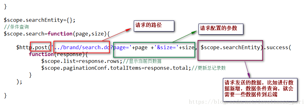 $http.post接收三个参数,$http.get接收两个参数,$http.post比$http.get多了一个“请求发送的数据”。