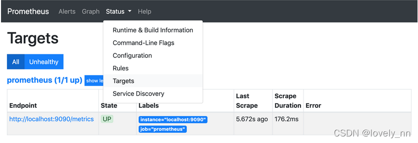 可以查看当前监控系统中的一些监控目标(Status -> Targets):
