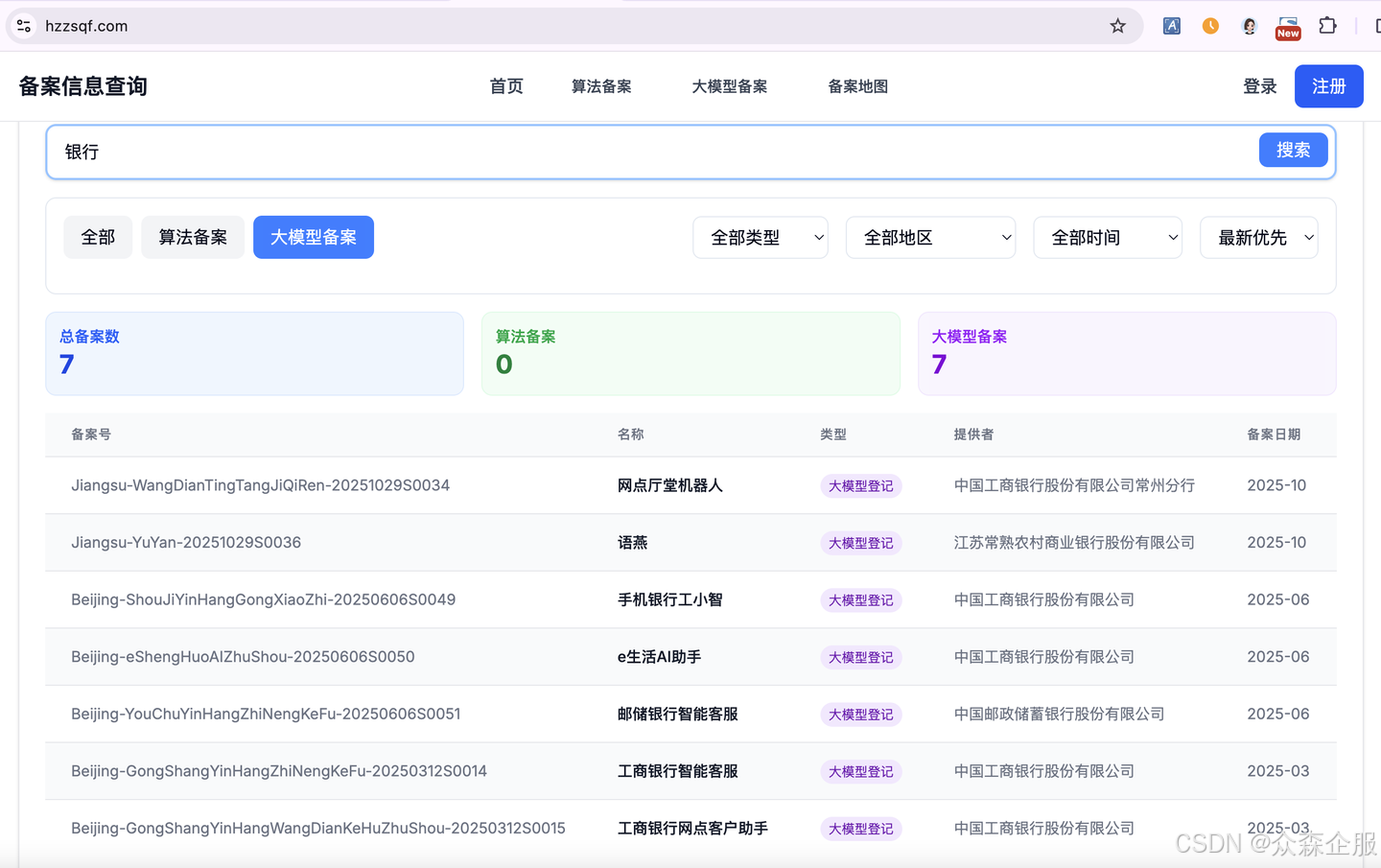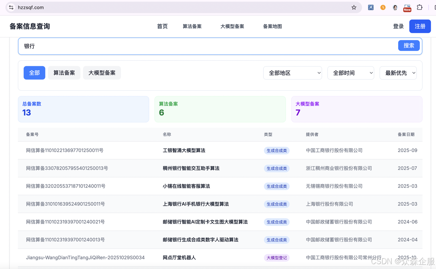 随着人工智能技术的飞速发展,“AI+金融”已成为银行业数字化转型的核心驱动力。越来越多银行开始探索大模型在客户服务、风险控制、智能投研等场景的应用。但与此同时,国家对金融领域AI模型的监管也日趋严格——算法备案与大模型登记/备案,已成为银行上线AI服务的“必经之路”。