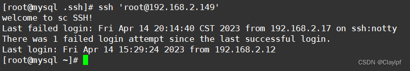 [root@mysql .ssh]# cat id_rsa_2048_mysql_主.pub >> .ssh/authorized_keys
