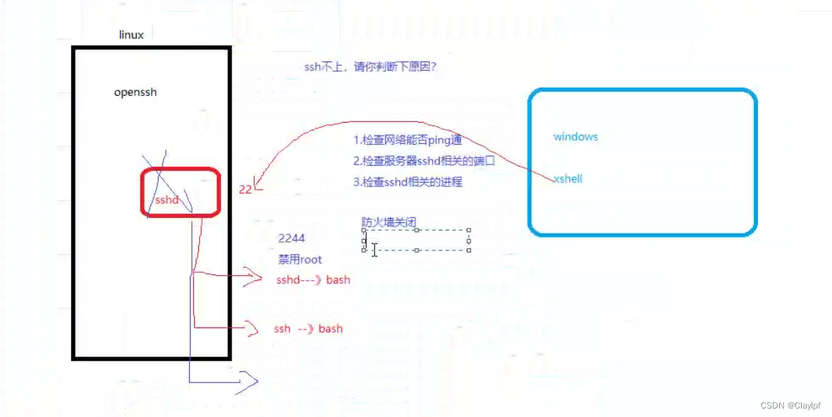 查看sshd listen状态是否存在4.看日志看错误提醒