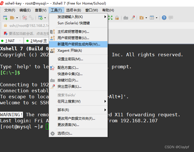 1、我们先点开Xshell里的工具中的新建用户密钥生成向导