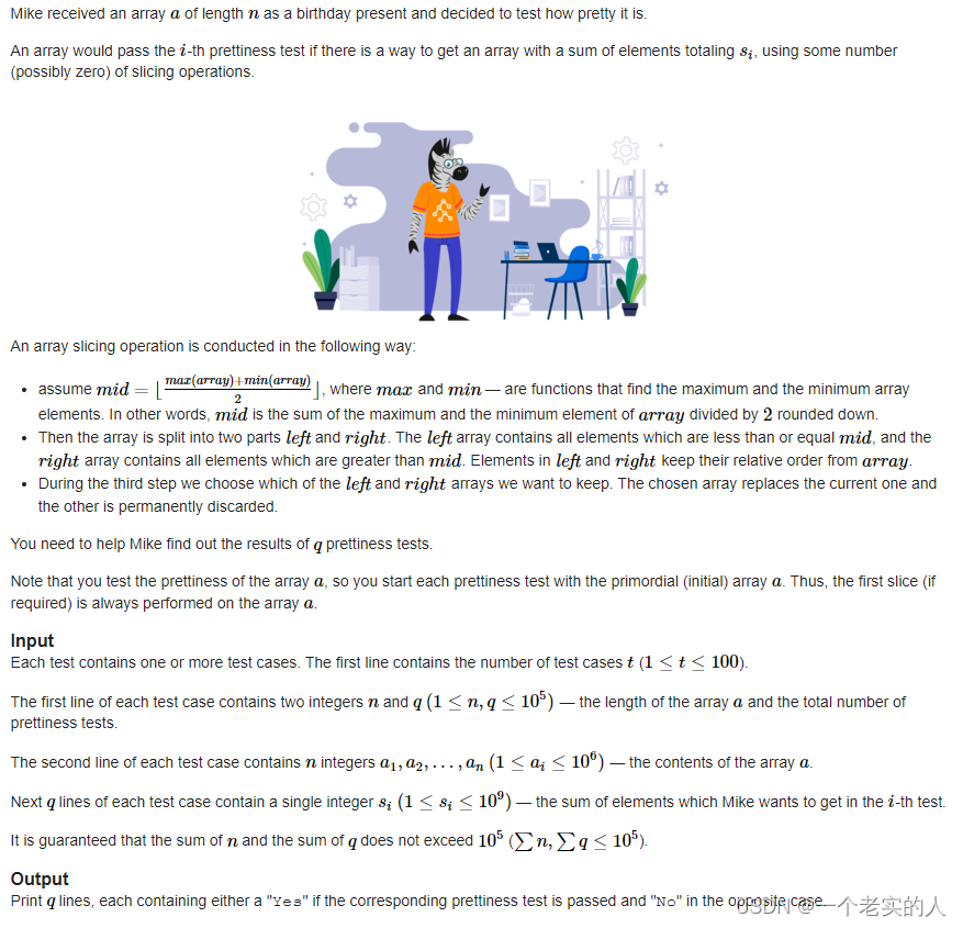 题意:长度为n的序列,每次可将当前序列分为两半,规则:mid=(a[max]+a[min])/2mid=(a[max]+a[min])/2mid=(a[max]+a[min])/2,所有<=mid的放到左边一类,>mid的放到右边一边,每次永久舍弃一边。m个询问,问能不能找到和为当前值的,能输出Yes,不能No。