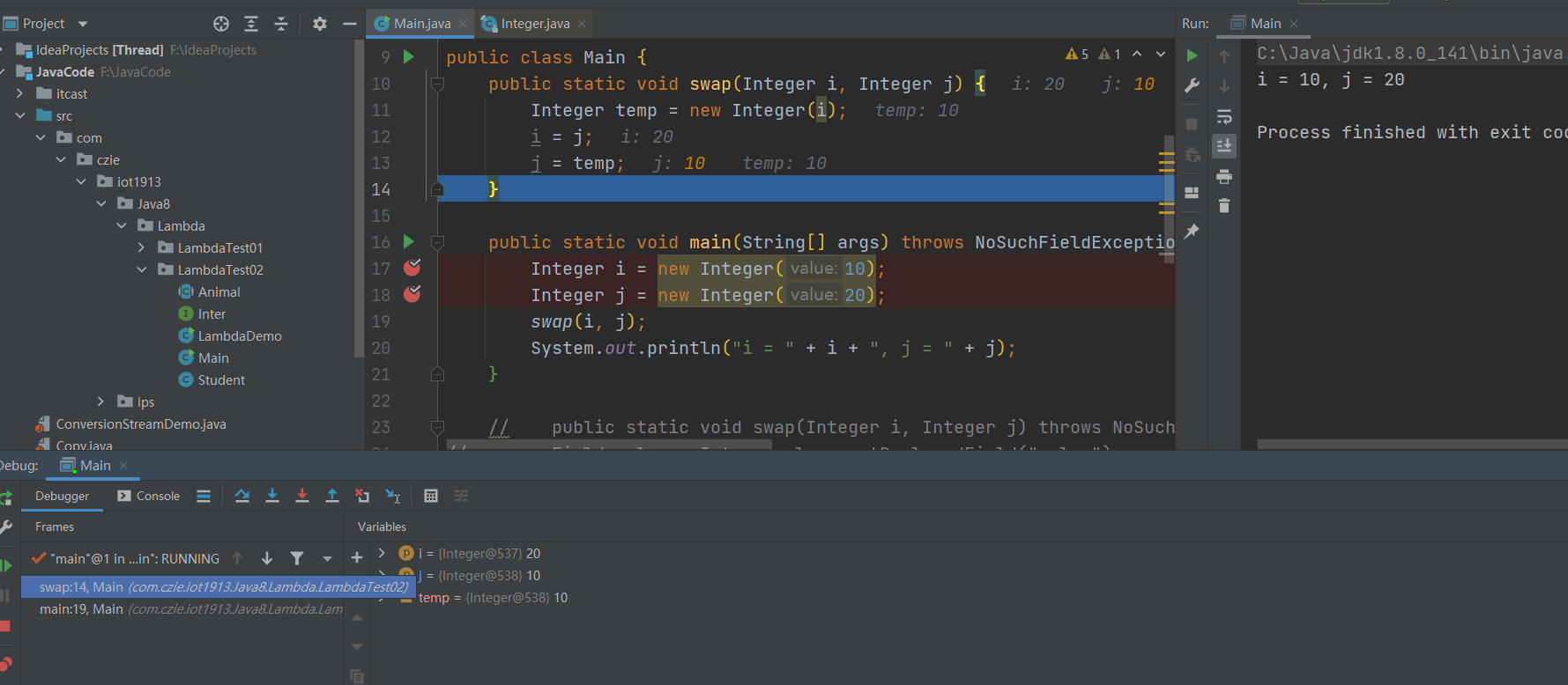 简单理解就是上面的 swap 方法其实真实交换的是 两个形参 i 和 j 的值,而没有去改变 mian方法 i 和 j 的值