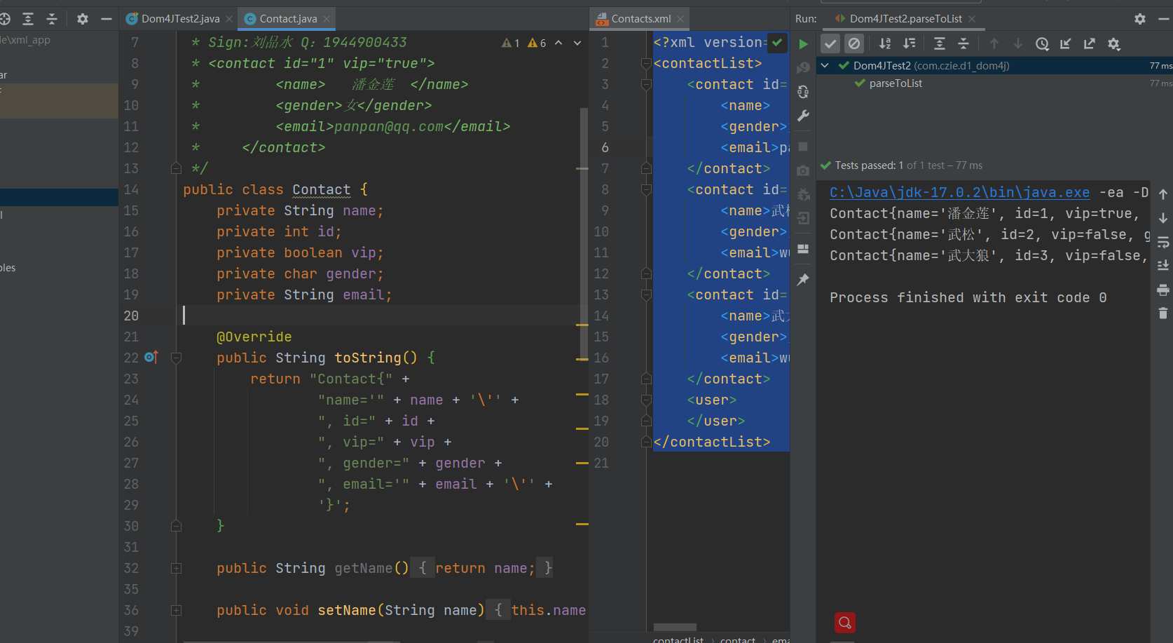 List<Element> contactEles = root.elements("contact");