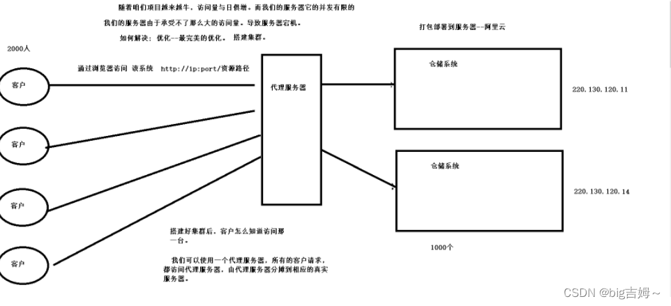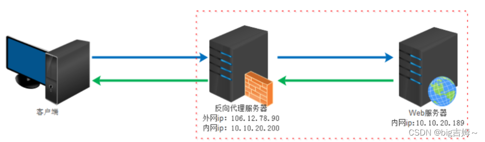 反向代理: 该服务器代理的为服务器端,对于客户来说不知道访问的真实服务器。