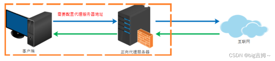 正向代理: 该服务器代理的为客户端,对于后面真实的服务器来说,不知道访问者的地址。比如:翻墙软件。