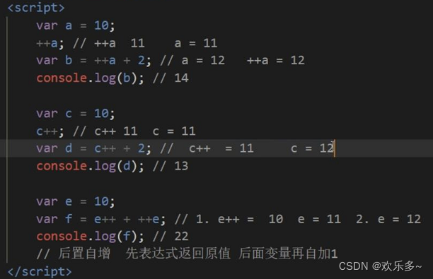 - 前置递增运算符,++写在变量的前面,++age,相当于age=age+1;先自加1,后返回值。