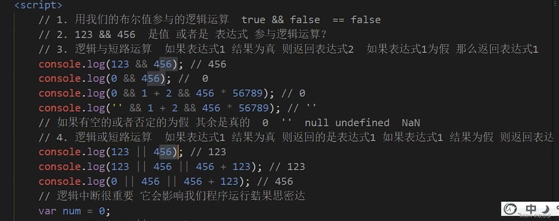 - 逻辑与&&, 两侧都为true,结果才是true