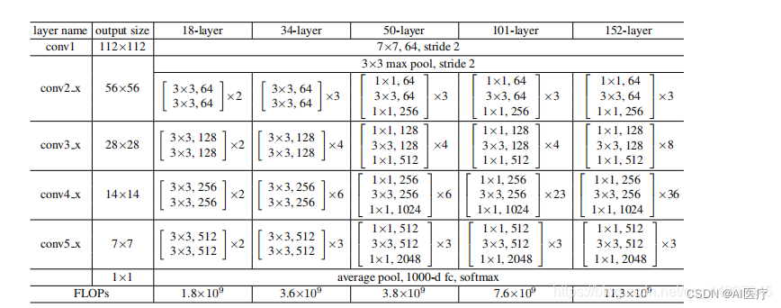 ResNet的经典网络结构有:ResNet-18、ResNet-34、ResNet-50、ResNet-101、ResNet-152几种,其中,ResNet-18和ResNet-34的基本结构相同,属于相对浅层的网络,后面3种属于更深层的网络,其中RestNet50最为常用。