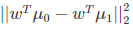 欲使异类样例的投影点尽可能远离,可以让类中心之间的距离尽可能大,即下面式子尽可能大:
