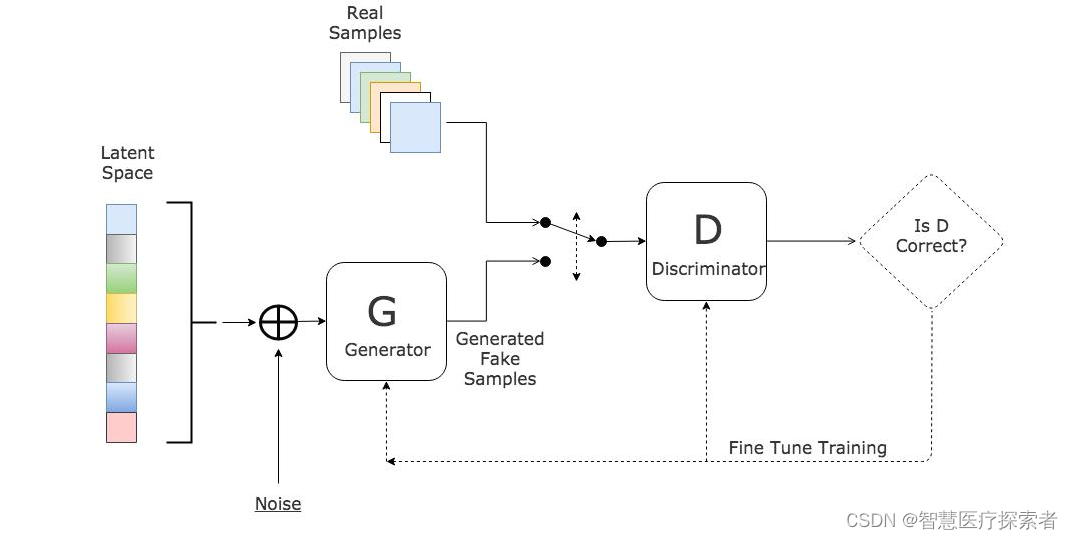 - 让判断器判断上述输出是“真”或“假”,以此作为生成器的输出。