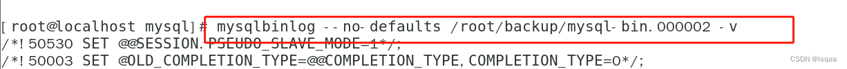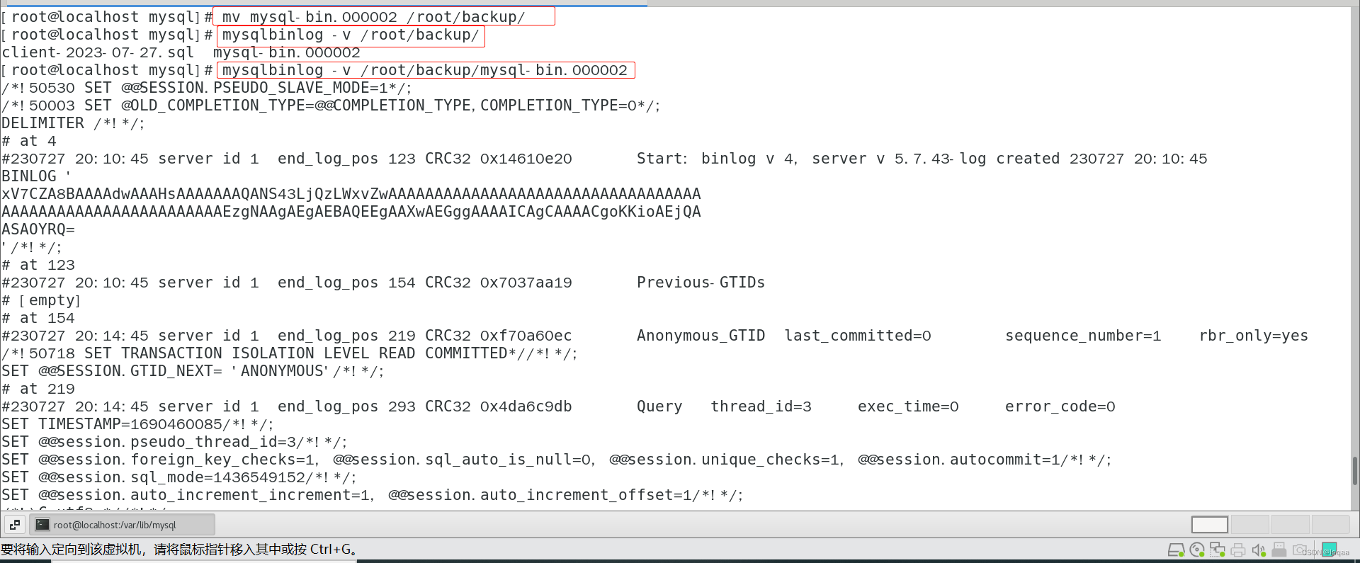 并查看 mysqlbinlog -v /root/backup/mysql-bin.000002