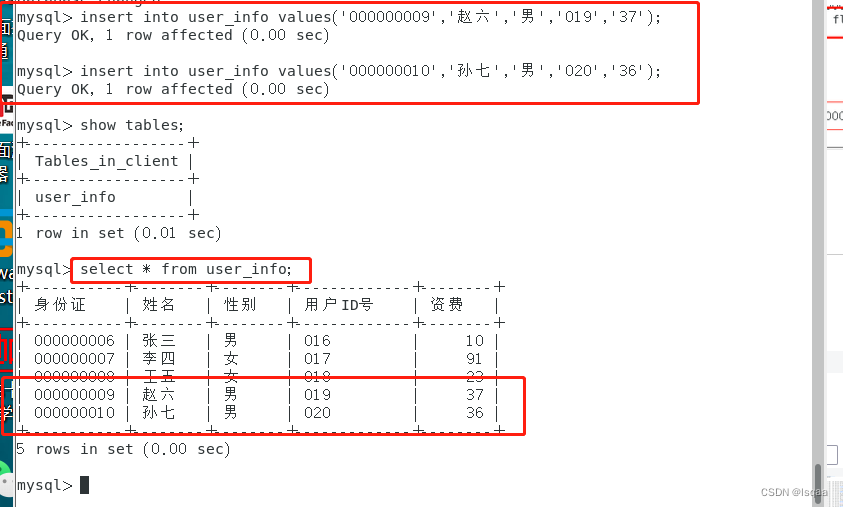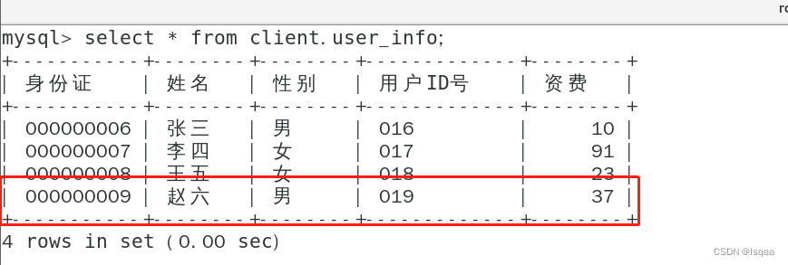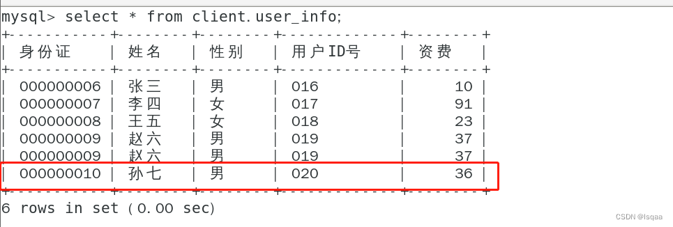 北京移电通信公司的用户信息数据库为client,用户资费数据表为user_info