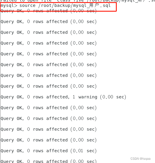 登录mysql 数据库执行source 备份sql脚本路径
