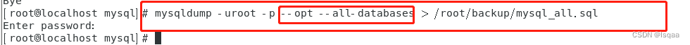 mysqldump -u用户名 -p[密码] [选项] --opt --all-databases > /备份路径/备份文件名