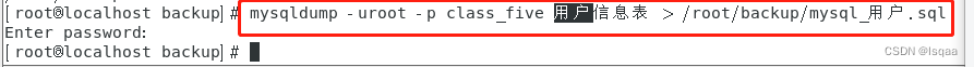 mysqldump -u用户名 -p[密码] [选项] 数据库名 表名 > /备份路径/备份文件名