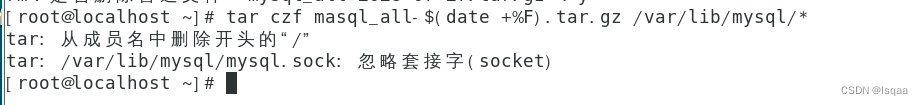 | 按照特定格式对数据库目录进行备份 tar czf mysql_all-$(date +%F).tar.gz /var/lib/mysql/* | |