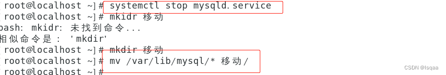 停服务并将 /var/lib/mysql 的所有文件移动到指定目录
