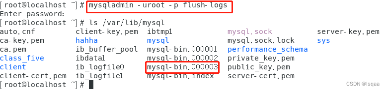 进行日志回滚:mysqladmin -uroot -p123456 flush-logs