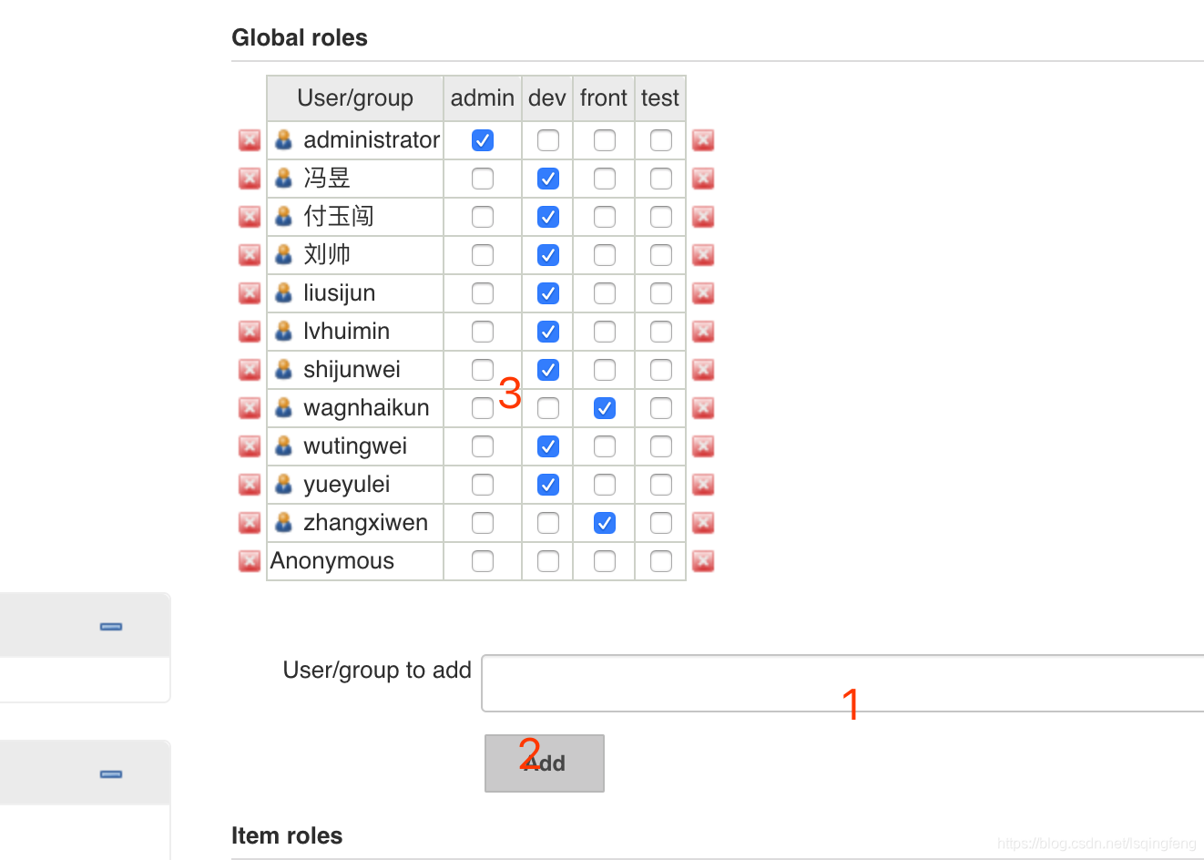 按图中够就行。我配置好了三个角色,分别代表开发,前端,测试。