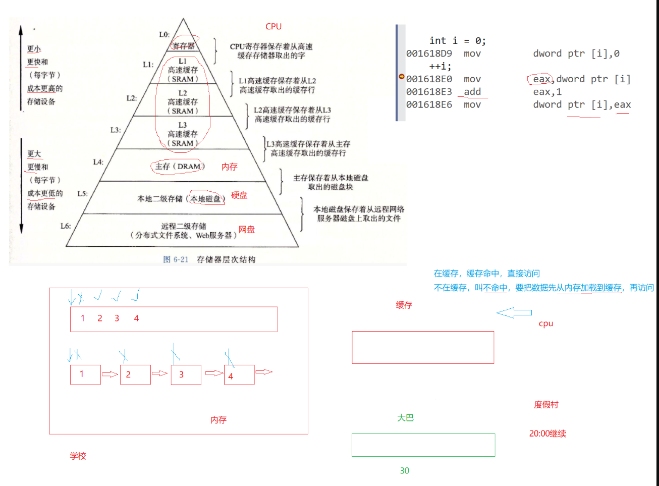 由于缓存的速度相较于内存更快,所以cpu会将内存中的内容加载至缓存中再进行访问