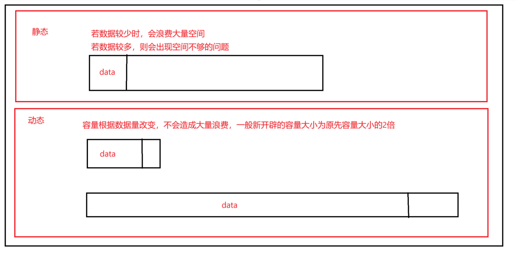 静态分配实现存在局限性,如空间浪费或空间开辟不足的情况