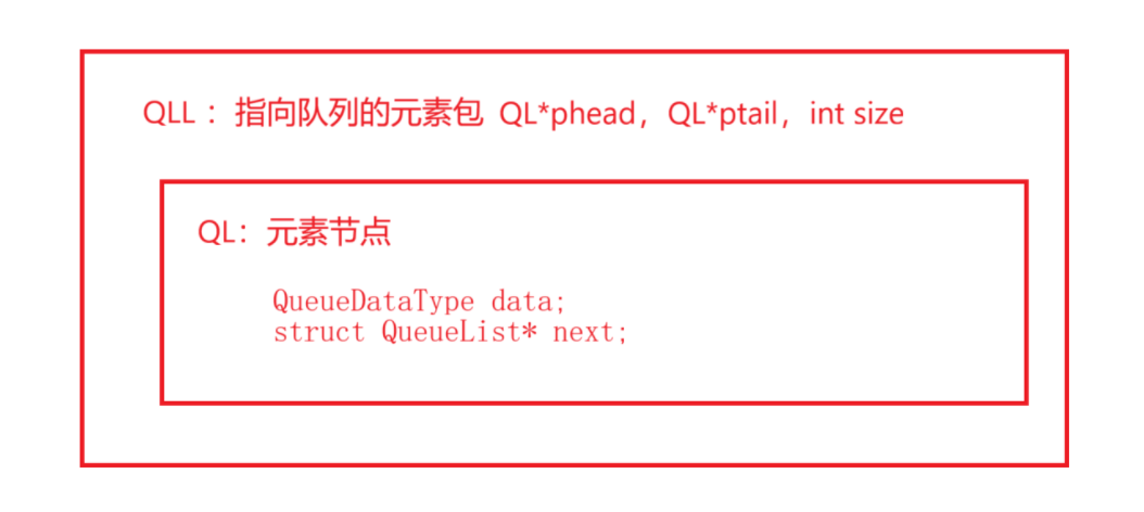 typedef int QueueDataType; //数据结构类型 typedef struct QueueList //队列节点结构体 { QueueDataType data; struct QueueList* next; }QL; typedef struct QLList //QL数据清单 { QL* phead; QL* ptail; int size; }QLL; - 3.2 入队操作(enqueue)